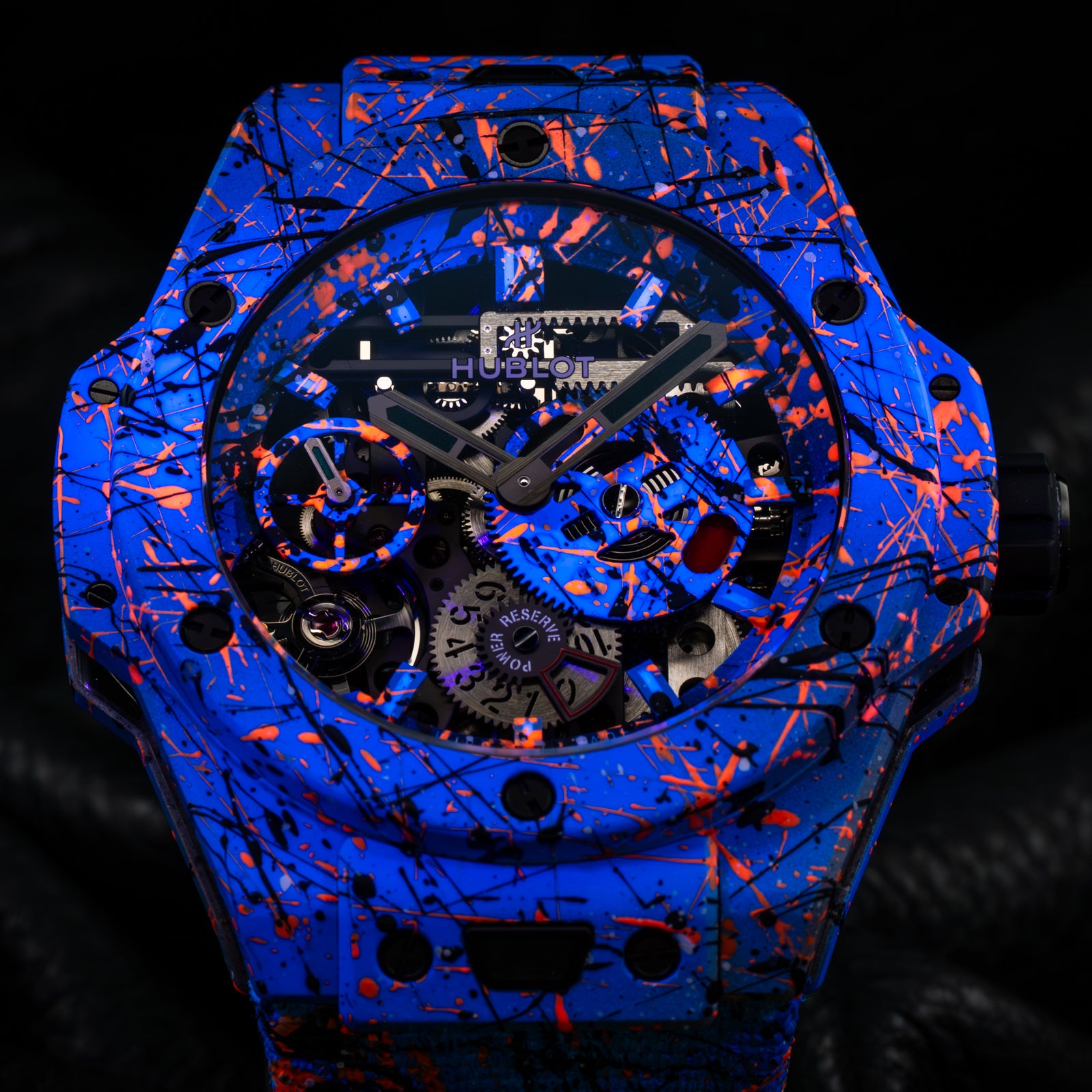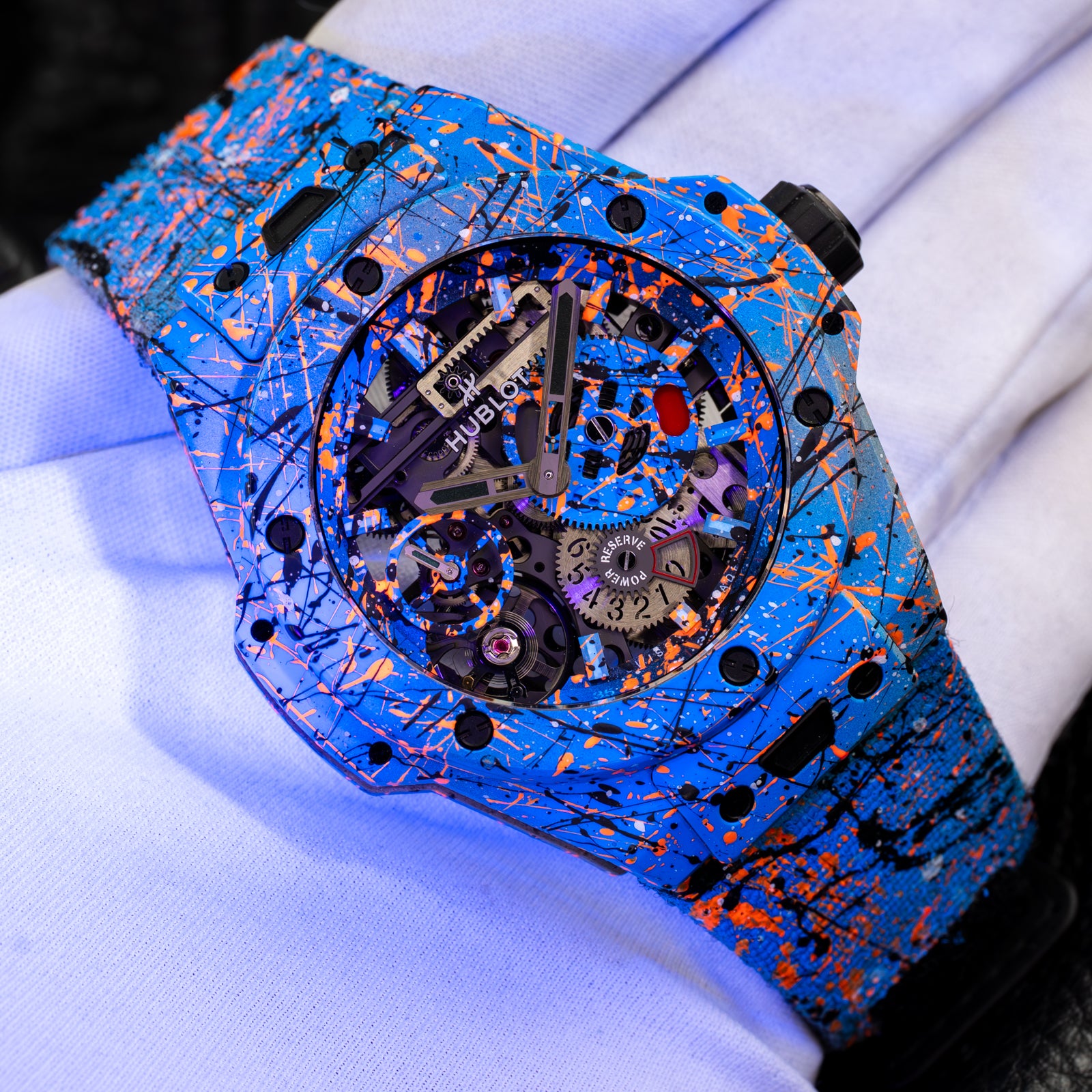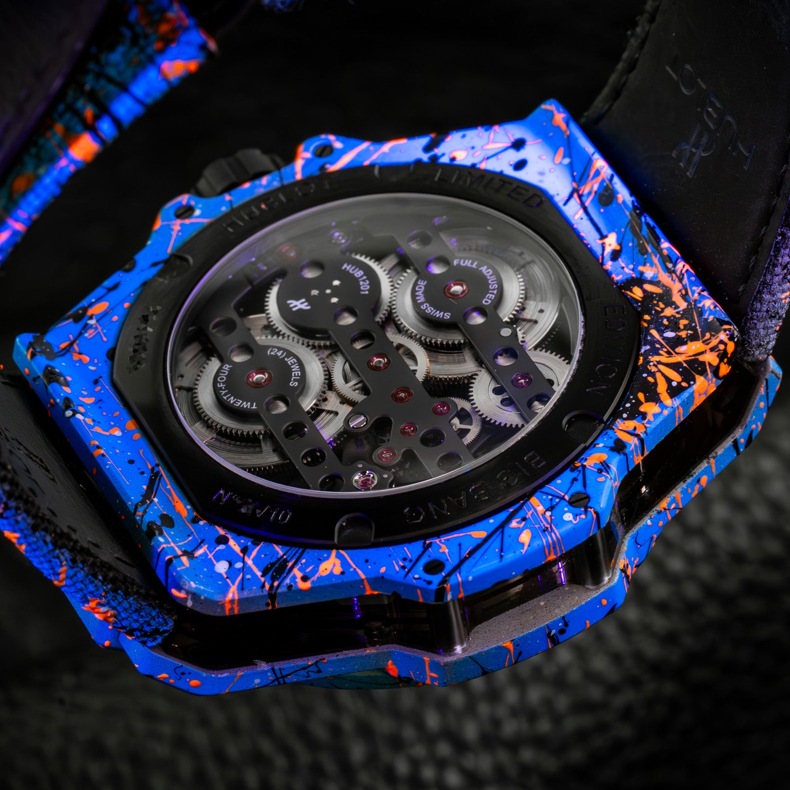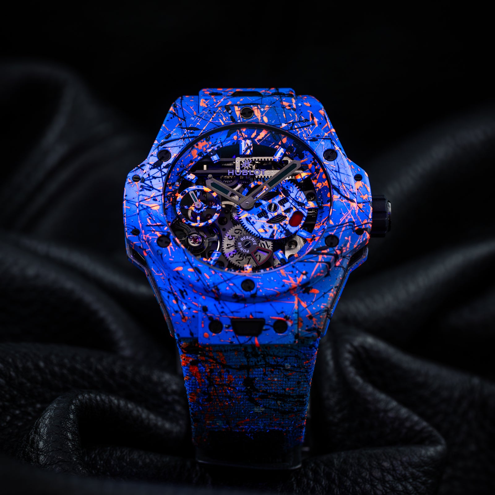 The Hublot Big Bang Meca-10 Street Art Limited Edition 424.XC.1123.NR.STR23, known as "Oceanic Fusion," is a bold fusion of avant-garde horology and urban artistry. Limited to just 10 pieces, this timepiece showcases a vibrant, hand-painted design that extends from the open-worked dial to the composite concrete case and strap, ensuring each watch is a unique masterpiece.