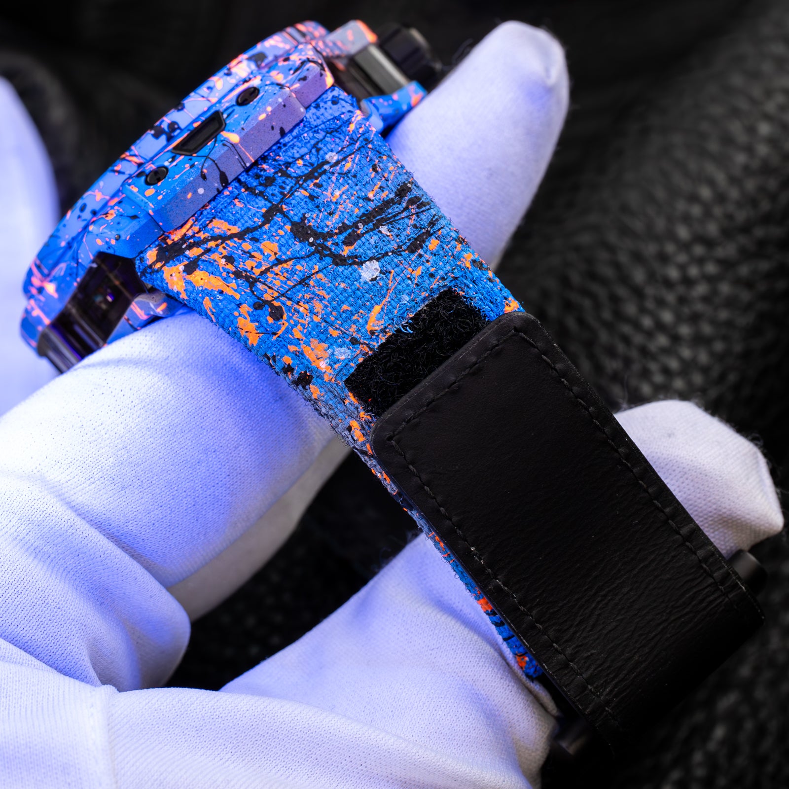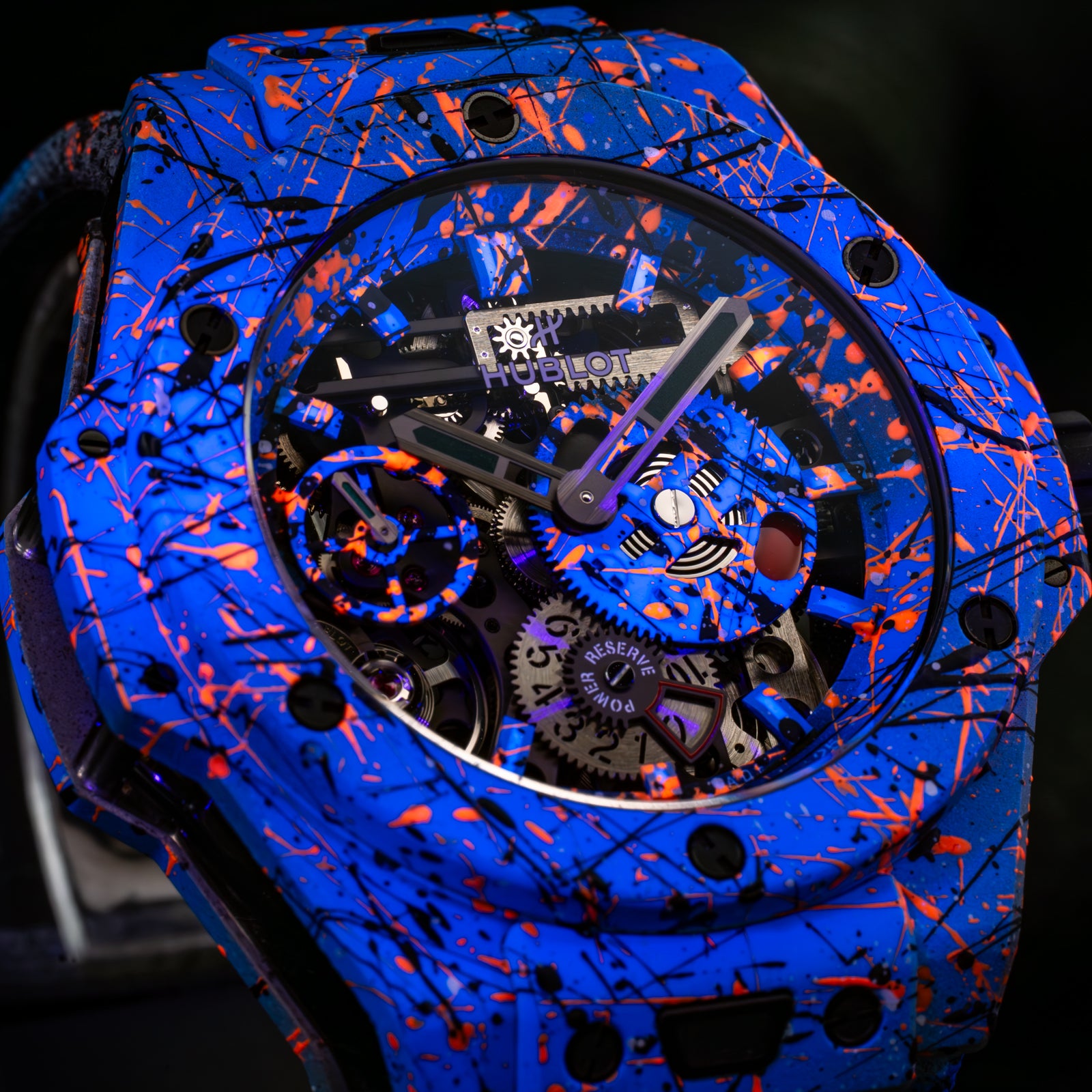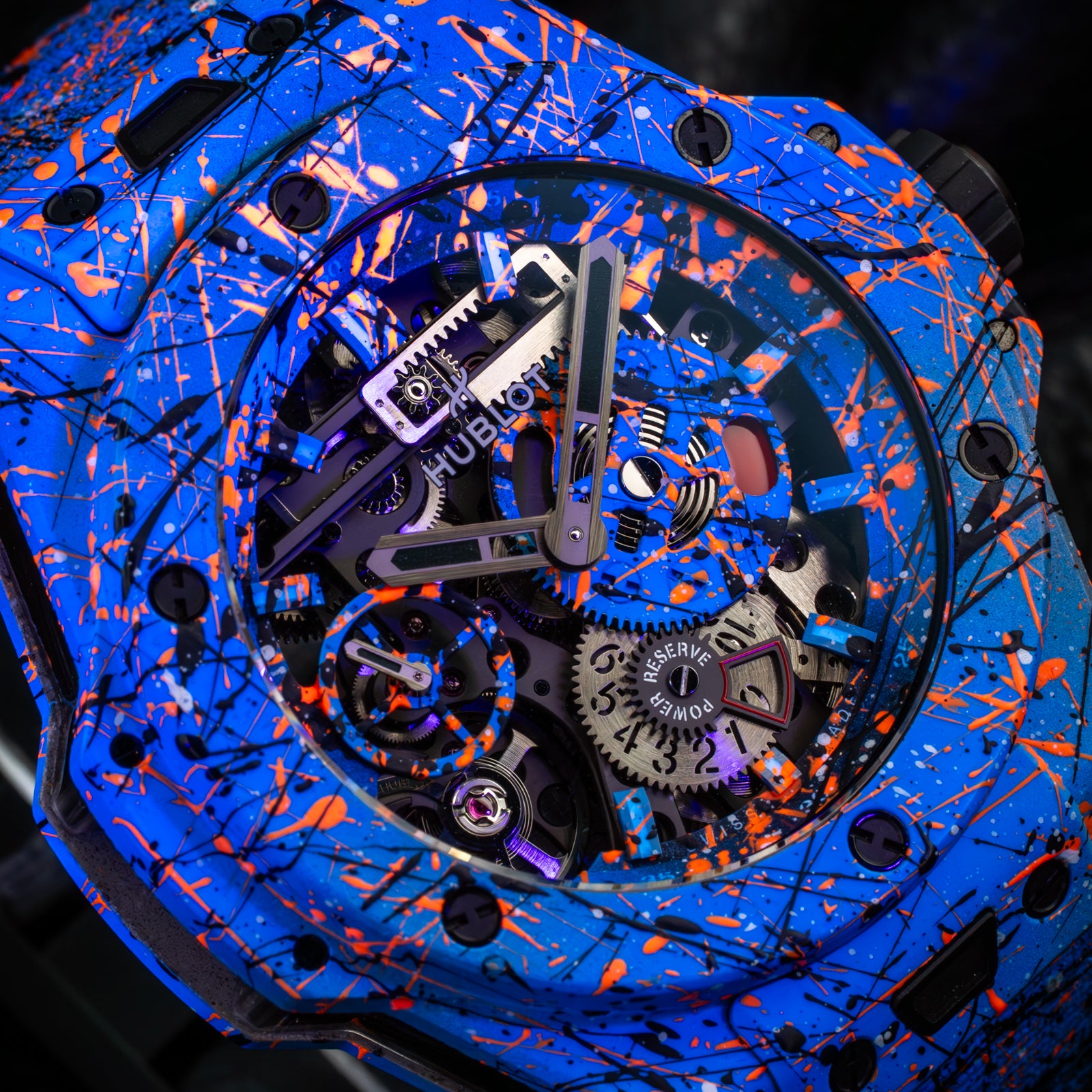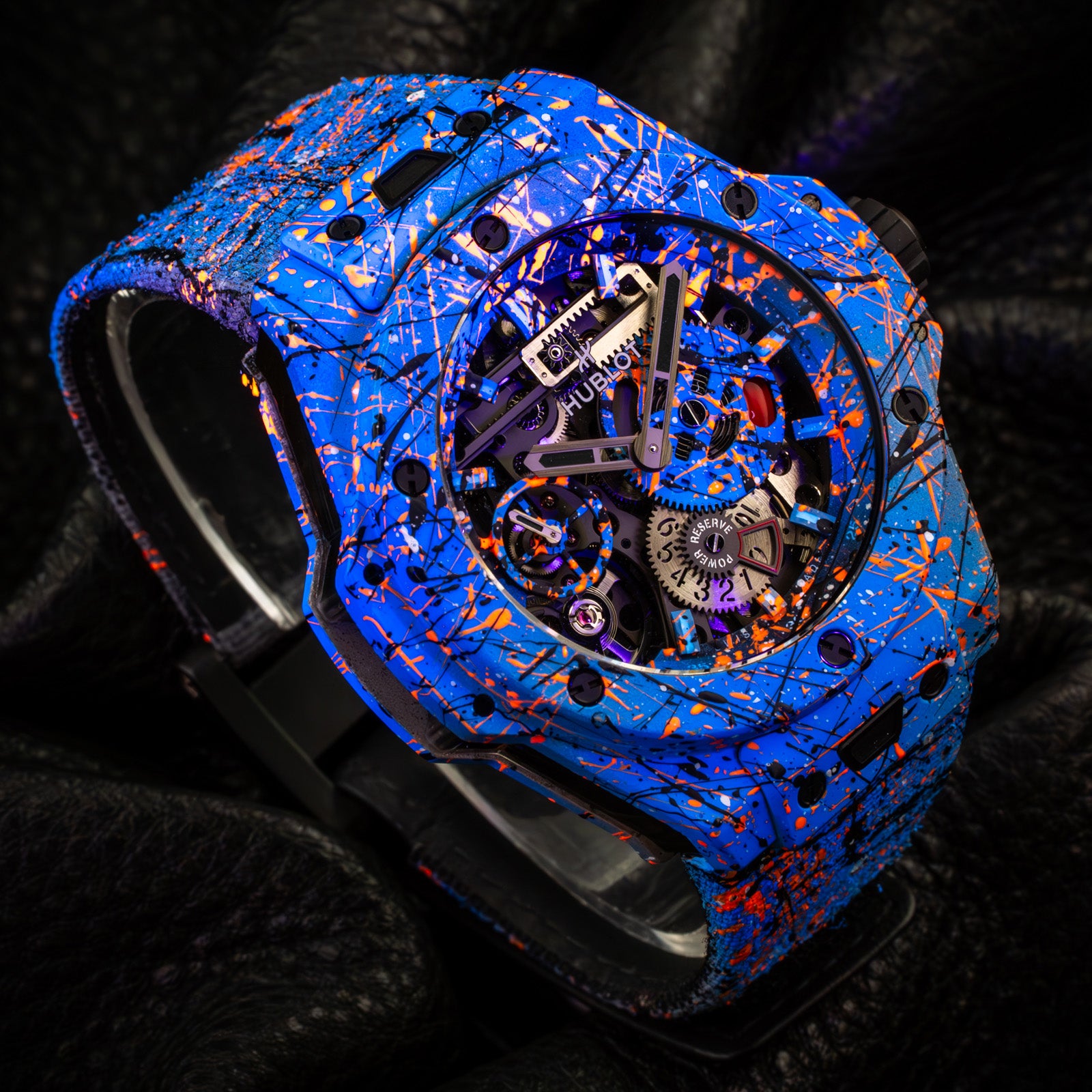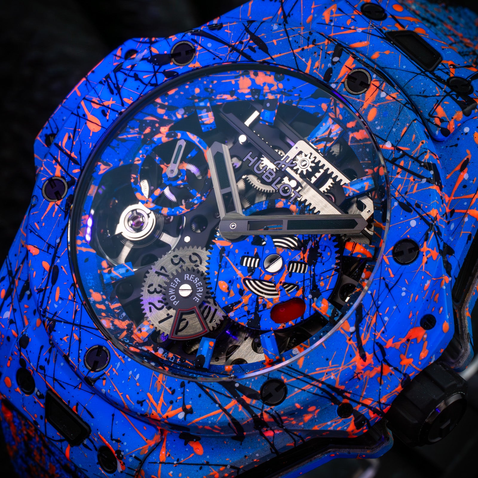 The Hublot Big Bang Meca-10 Street Art Limited Edition 424.XC.1123.NR.STR23, known as "Oceanic Fusion," is a bold fusion of avant-garde horology and urban artistry. Limited to just 10 pieces, this timepiece showcases a vibrant, hand-painted design that extends from the open-worked dial to the composite concrete case and strap, ensuring each watch is a unique masterpiece.