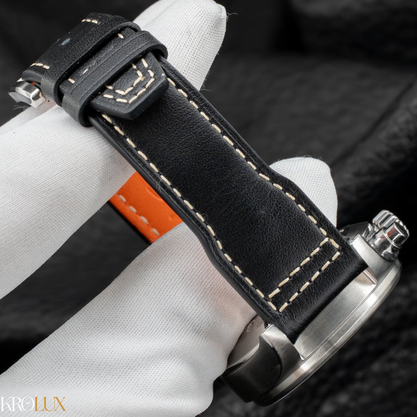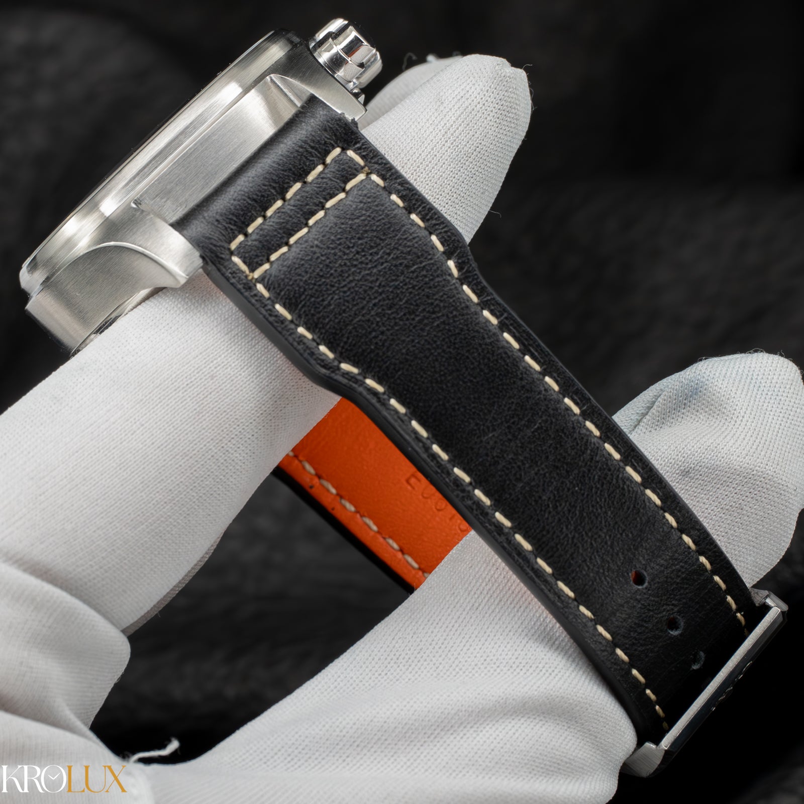 The matte black dial is all business. High contrast white numerals and bold hands deliver instant legibility, just as a pilot’s watch should. The layout is clean, balanced, and aggressively functional, with the day and date at three anchoring the design. Nothing here is decorative for the sake of it. Every element earns its place.
