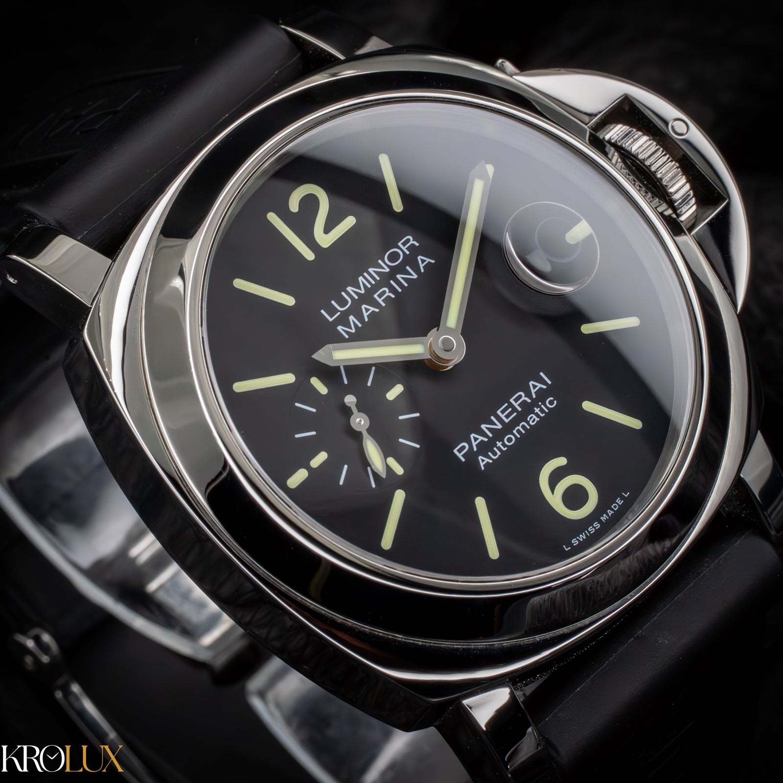 Date display, Display back, Interchangeable strap, Limited edition, Luminous hands, Luminous indices, Luminous numerals, Push/pull crown, and Small seconds