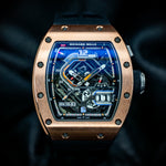 Bold, unapologetic, and unmistakably Richard Mille, the RM 30-01 fuses cutting-edge innovation with pure mechanical artistry. Crafted from rose gold and titanium, its dynamic case design commands attention, while the skeletonized dial showcases the technical brilliance beneath — a perfect harmony of form and function.